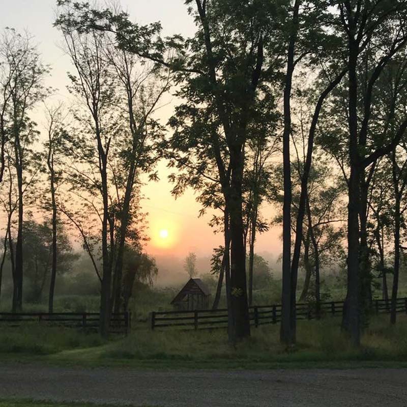 - Mixed hardwood forest (oak, maple, hickory)