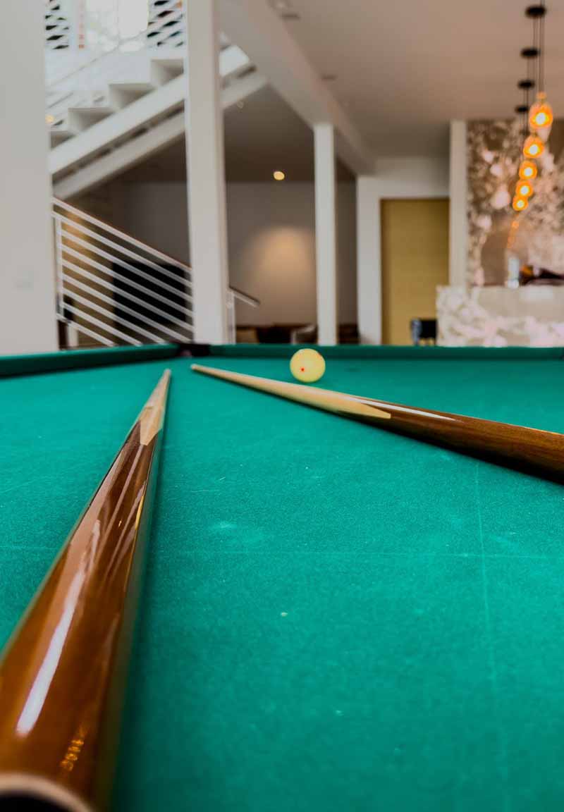 There's a four-season room off the main living area with a large table and screens that let the outside in without the bugs. A lounge with a pool table sits in the lower level. A multi-level patio out back has a fire pit that gets used more than you'd think. The whole building feels lived-in in the best way—like it's ready for guests to actually use it, not just admire it.